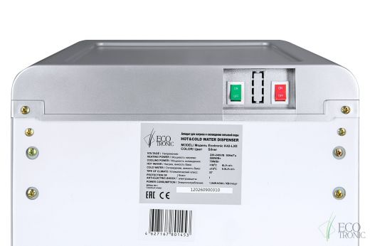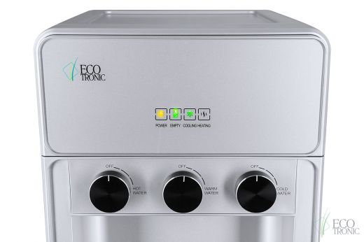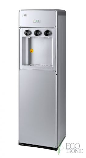 Кулер Ecotronic K42-LXE full silver — напольный кулер с нижней загрузкой бутыли и поворотными кранами подачи воды.