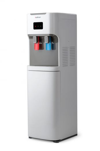 Отличительной особенностью и явным преимуществом в пользу этого девайса является нижняя загрузка бутыли. Бутыль с питьевой водой устанавливается в шкафчик, на горлышко бутыли надевается встроенный сифон с заборной трубкой, а Вам остается только наблюдать за индикатором наличия воды. Такой диспенсер существенно облегчит Вашу жизнь!