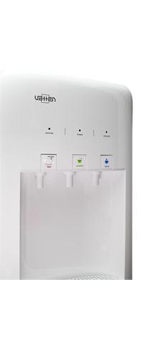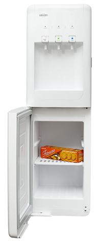 Встроенный шкафчик для хранения (объёмом 20 л.) с извлекаемой внутренней полкой. Три отдельных крана для налива воды (горячая, холодная и вода комнатной температуры) гарантируют вам налив именно горячей и холодной воды. Управление наливом осуществляется кнопками, что более гигиенично чем использование пуш-крана. Баки горячей и холодной воды из нержавеющей стали. Три LED индикатора (включение питания, индикатор нагрева, индикатор охлаждения).