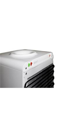 Кулер со шкафчиком. Один из самых высоких кулеров, предлагаемых на рынке. Эргономика рассчитана для среднестатистического европейца - высота кулера равна 1075 мм. При этом, высота от пола до верха решётки каплесборника (места установки стакана/кружки при наливе воды) в среднем на 70 - 100 мм выше чем у большинства конкурентов и составляет 640 мм.