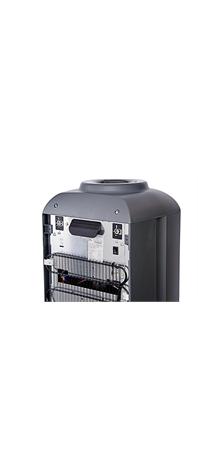 Кулер для воды VIP класса из Италии. Напольный. Компрессорный. Без шкафчика. Для дома. Для офиса. Цвет корпуса тёмно-серый, все панели изготовлены из качественного пластика. Управление кнопками. Раздача горячей, холодной и газированной воды. Функция "защита от детей" на подачу горячей воды. Встроенный подстаканник. Три LED индикатора (индикатор питания, индикатор нагрева, индикатор охлаждения). Самая высокая производительность среди кулеров для бутилированной воды (температура и производительность нагрева - 90 градусов Цельсия, 8 л/ч; температура и производительность охлаждения - 8 - 10 градусов Цельсия, 22 л/ч). Возможность регулировки максимальной температуры нагрева и минимальной температуры охлаждения, а также степени газирования воды. Использует одноразовые баллоны с газом СО2 (одного баллона достаточно для приготовления до 120 л. газированной воды). Климатический класс SN (температура эксплуатации кулера от 10 до 32 градусов Цельсия).