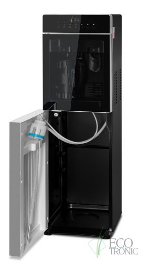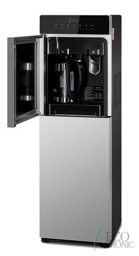 Кулер Ecotronic M15-LXKEM с ЧАЙНИКОМ! Аппарат с нижней загрузкой бутыли, электронное охлаждение. Цвет корпуса: черный с серебряной вставкой. Особенность аппарата, встроенный литровый чайник!елях имеются отверстия под крепления держателей для стаканов.