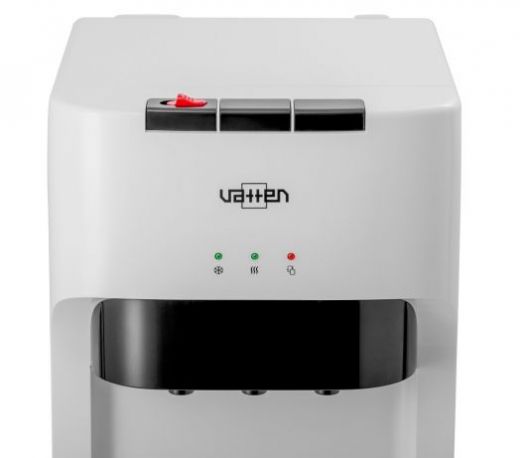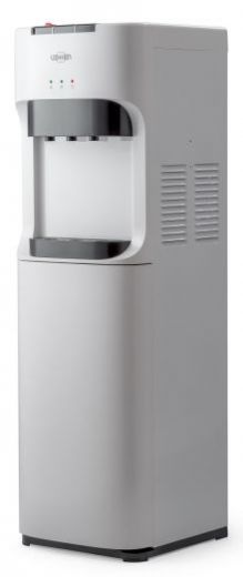 Напольный пурифайер с электронным охлаждением. Цвет корпуса белый. Боковые панели металлические. Три крана, управление разливом воды при помощи трёх кнопок (горячая, холодная и вода комнатной температуры). Бак горячей воды из нержавеющей стали. Кран горячей воды имеет "защиту от детей". Три LED индикатора (недостаток воды, индикатор нагрева, индикатор охлаждения - low water, hot, frost). Пригоден для эксплуатации в очень жарком климате - температура эксплуатации кулера от 10 до 38 градусов Цельсия. Для дома, офиса, учреждения.