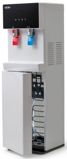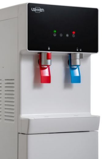 Напольный пурифайер VATTEN OV705WK + EVERPURE 4C произведён в Китае. Данная модель ещё раз доказывает, что "сделано в Китае" может служить синонимом для понятия "высокое качество". Диспенсер, имеющий приятный глазу европейца дизайн, спроектирован также с учётом антропометрических данных среднего европейского пользователя - высота от пола до решётки каплесборника составляет 630 мм, т.е. вам не придётся наклоняться для того чтобы налить стакан воды.