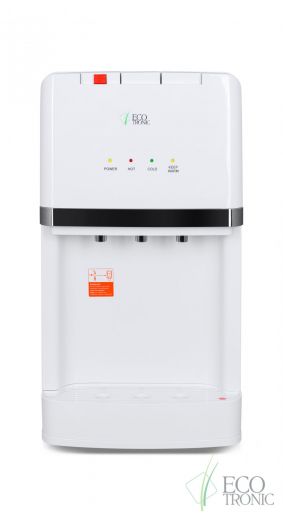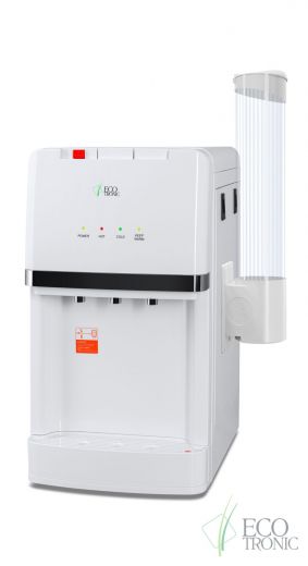 Электронное охлаждение. Стильный дизайн. Три крана типа "клавиши": подачи горячей воды с защитой от детей, холодной воды и подачи воды комнатной температуры из бутыли. Индикация работы пурифайера, нагрева и охлаждения воды. Корпус белого цвета с серебристым декором.