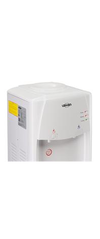 Компактный кулер со шкафчиком. Цвет корпуса белый. Бутылеприёмник, а также передняя и верхняя панели изготовлены из высококачественного, устойчивого к ультрафиолету ABS пластика, боковые панели металлические. Два крана, управление кнопками. Кран горячей воды имеет "защиту от детей". Встроенный шкафчик для хранения объёмом 10 л., с извлекаемой полкой. Баки горячей и холодной воды из нержавеющей стали. Три LED индикатора (включение питания, индикатор нагрева, индикатор охлаждения). Пригоден для эксплуатации в очень жарком климате - температура эксплуатации кулера от 10 до 38 градусов Цельсия.